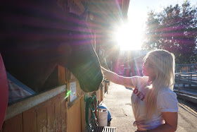 After Tassy was finished teaching her lesson she took me into the ring to show me training. She showed me how to get the horse to run in a circle, then how to make it stop and walk towards you. This part scared me a bit as the horse would walk straight towards you and it would seem like it wasn't going to stop, but then it would stop so close to you you could feel its breath. I didn't get on a horse that day and I still haven't. I am just not ready yet. That day was a lot for me, as much as I love horses, that fall really scared me. They are so beautiful but also so powerful.